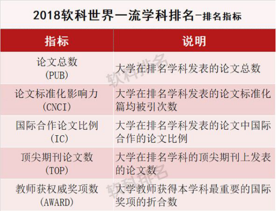 “软科世界一流学科排名”使用一系列国际可比的客观学术指标对全球大学在相关学科的表现进行测量,包括科研规模、科研质量、国际合作、高水平科研成果、国际奖项等。具体说明如下: