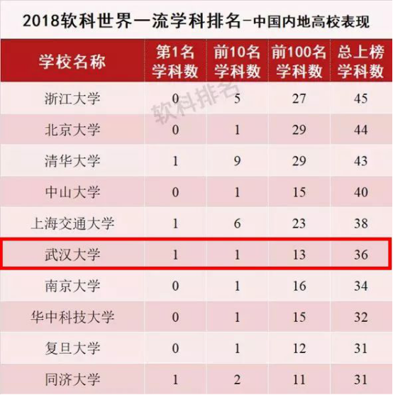 7月17日,“软科世界一流学科排名”(Shanghai Ranking's Global Ranking of Academic Subjects)正式发布。武汉大学共有36个学科进入世界一流学科榜单,13个学科跻身世界前100名。值得一提的是,武汉大学是遥感技术学科的“冠军高校”,取得了全球第1名的优异成绩。