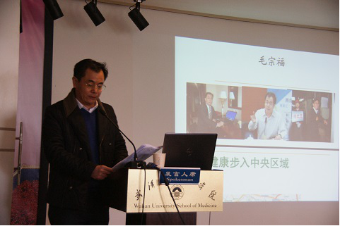 会上,毛宗福教授介绍了全国两会及湖北代表团参会情况,并与大家分享了参会的感受。在题为《人大代表看医改》的报告中,毛宗福教授围绕医改,提出健康步入中央区域、健康进入政治议题、健康进入经济领域,并全面阐述了党和国家对健康事业与健康产业的认识定位,深入解读了有关重大政策和有力举措。在此基础上,毛教授还阐明了医改的核心是经济管理,畅谈了医改实质促转型发展、推动健康中国实现的深远意义。